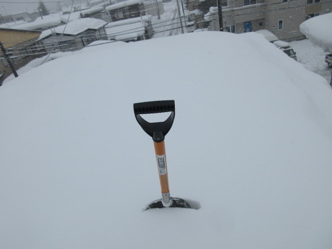 きんなは吹雪の中、わくわくしながら したば、先日下したところさ、またちゃんと同じ量積もってらもんだ。 上はフカフカの雪、下はギュっと締まって···