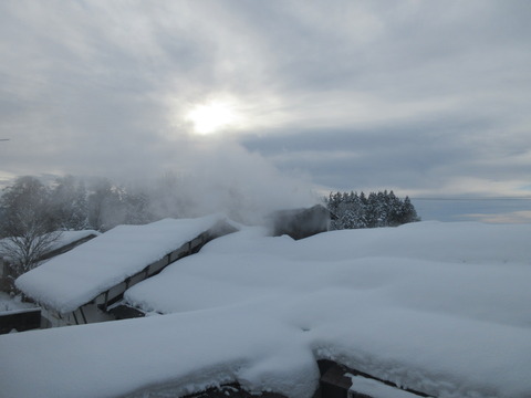 きんなは絶好の儲け空で、急遽屋上さ。 したば、丁度、蒸かしが上がってきた。 我が家の最先端、ここが一番キケンが危ねっす。 おが、ひんでぐ···
